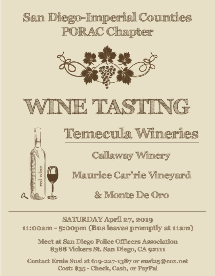 Come join us for a day of wine tasting on Saturday, April 27th at Callaway Winery in Temecula from 11:00 a.m. to 5:00 p.m.